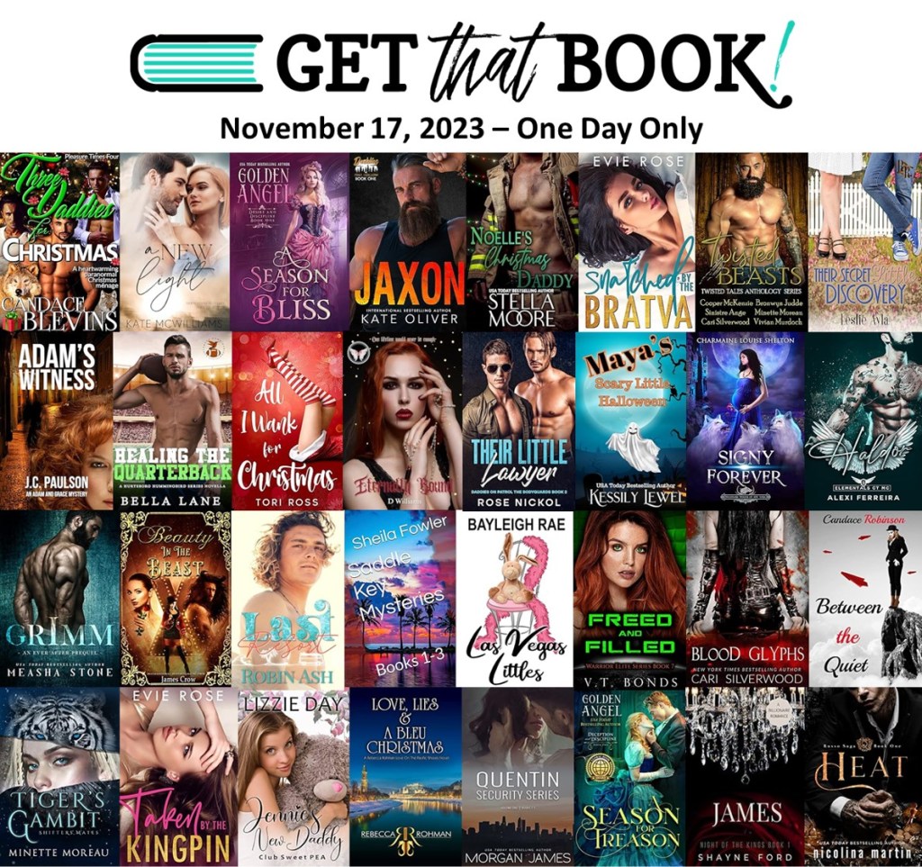 For one day only, an incredible group of authors are bringing you new ebook releases, deals, and discounts! Click the link provided and you will be redirected to GET THAT BOOK’s website where you can download all your new releases and deals: https://getthatbookpromotions.com/nov-17-2023-deals/